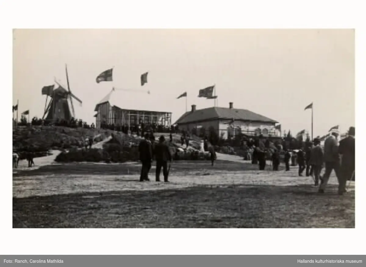 Utstallning Hantverks Och Industriutstallningen I Varberg 1904 Utstallningsomradet I Kvarteret Lilla Kari Med Den For Tillfallet Uppbyggda Serveringspaviljongen I Mitten Paviljongen Flyttades Senare Till Gamla Paskberget Bilden Tagen Mot Oster